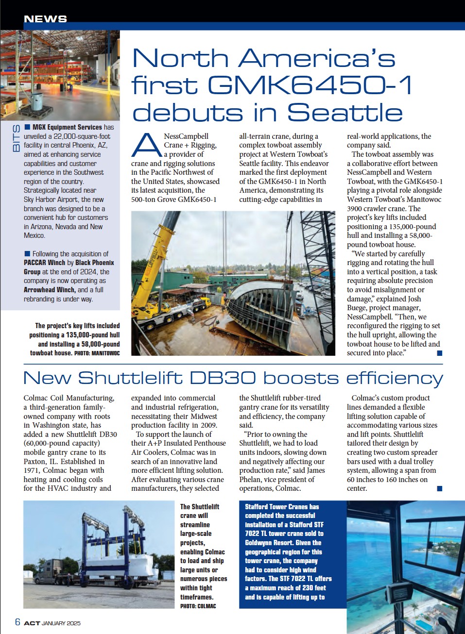 NessCampbell Crane + Rigging, the Pacific Northwest’s largest and best crane and rigging company showcased its latest acquisition, the 500 Ton Grove GMK6450-1 All Terrain Crane. One of the first projects it completed was at Western Towboat in Seattle, WA, marking its debut in North America. It demonstrated its cutting-edge capabilities in real-world applications. The Seattle crane service company lifted and helped set a 135,000-pound hull installation. We offer crane rental and services all over Washington, Oregon, Idaho, and beyond.